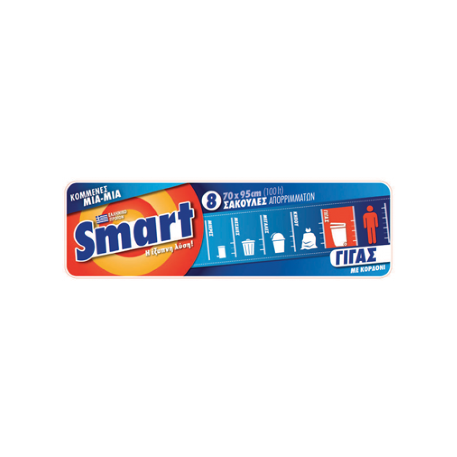 Smart Σακούλες Απορριμάτων Γίγας Με Κορδόνι 70Χ95 100L 8Τεμ